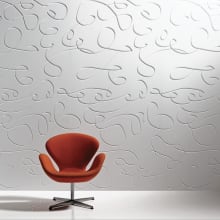 Like stepping into a shadowed grove, every nature-inspired texture in our BDNY display—from oceanic marbling in Wavelet to the metallic-specked surfaces of Sardinia Cork, dark to light wood grains of Saw Mark or Tanglewood, and sculpted acoustic forms of Muratto’s Urban Edge acoustic panels (pictured)—celebrates nature as both medium and muse.